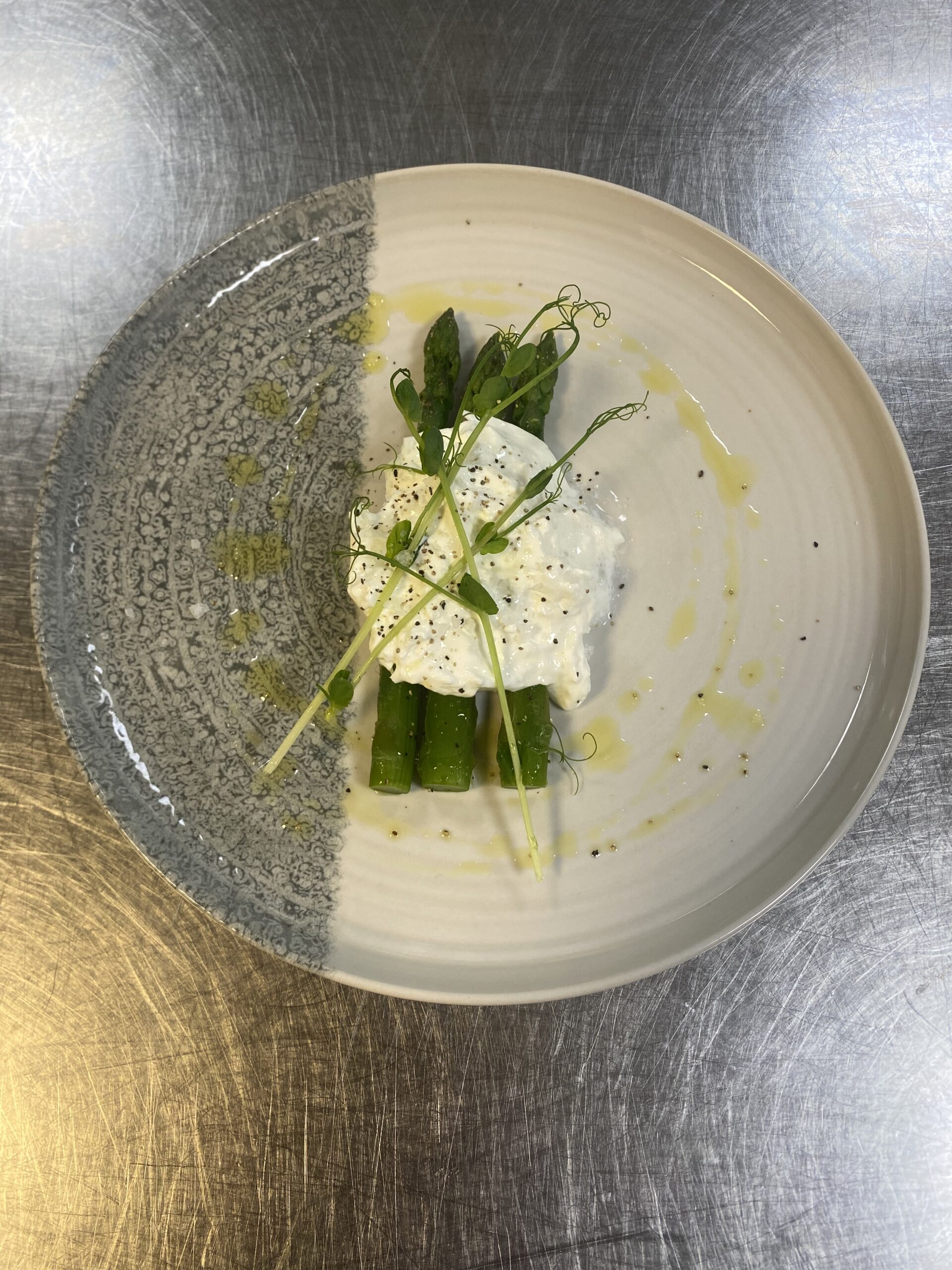 Krämig burrata, grön sparris,