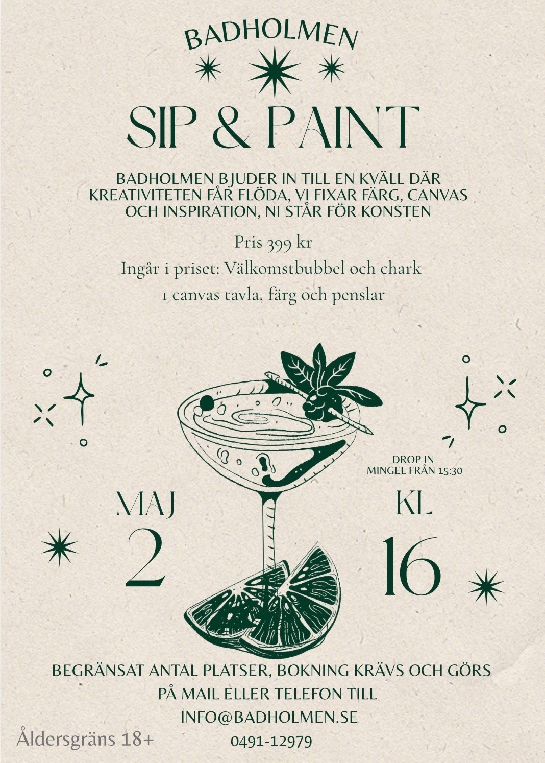BADHOLMEN BJUDER IN TILL EN KVÄLL DÄR KREATIVITETEN FÅR FLÖDA, VI FIXAR FÄRG, CANVAS OCH INSPIRATION, NI STÅR FÖR KONSTEN